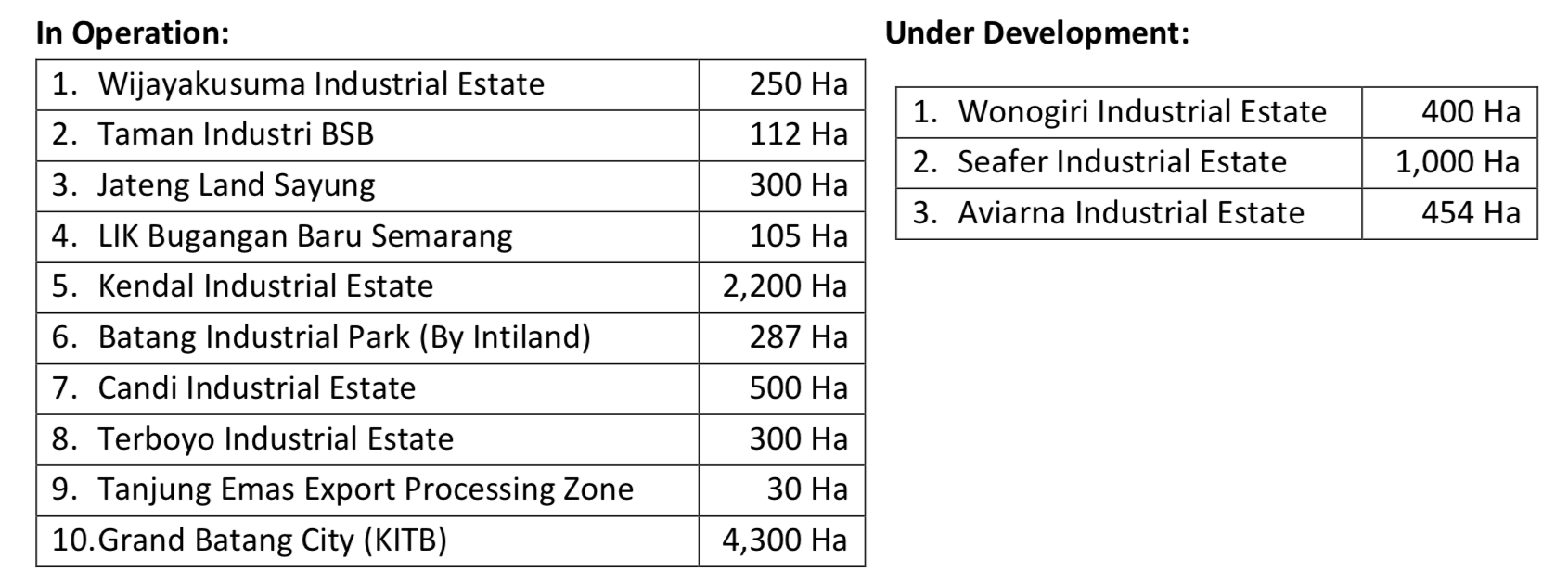 • PT Kawasan Industri Terpadu Batang (KITB), announced investments totaling IDR 3 trillion for its Phase 2 expansion, whereas Wanxinda Group has invested IDR 1 trillion leasing 98 hectares of the 350-hectare area in the Phase 2 expansion. The ground- breaking ceremony by Wanxinda Group on December 10, 2023, marked the initiation of the project development. Wanxinda will build Standard Factory Buildings and warehousing facilities, targeting industrial users, not only from Mainland China.