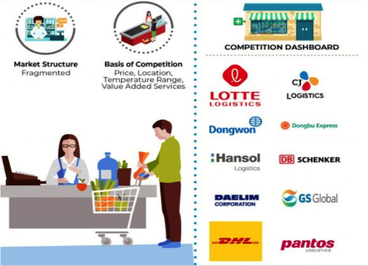South Korea cold chain market is more dynamic, whereas competition is fragmented in nature with multiple domestic and international players, organized 3PLs, and unorganized small players operating in the market. There are several large and small companies operating in the cold chain industry providing both cold storage and cold transport facilities. Most of these companies operate