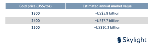 To roughly estimate market size in value terms for annual Indonesian gold output: